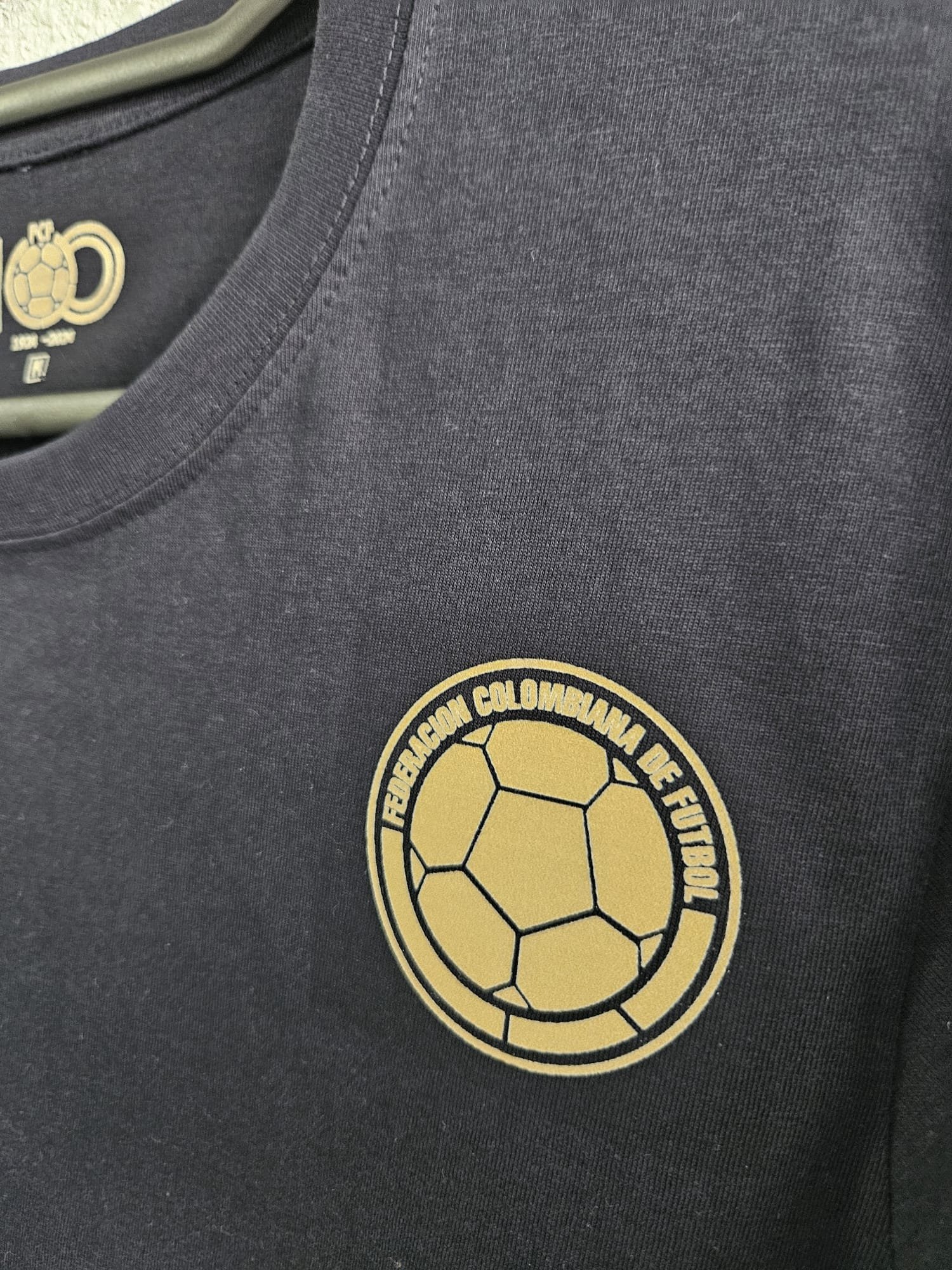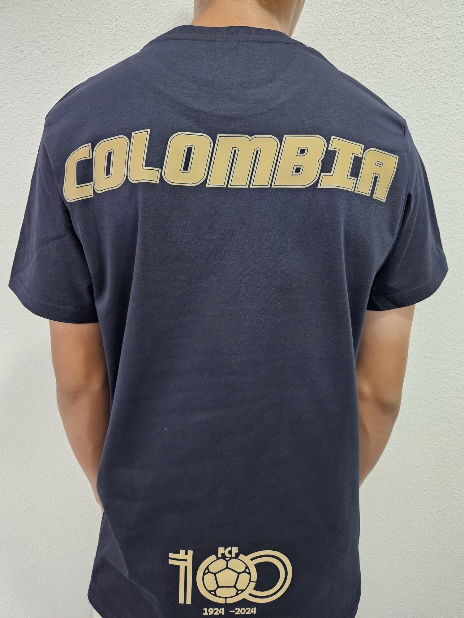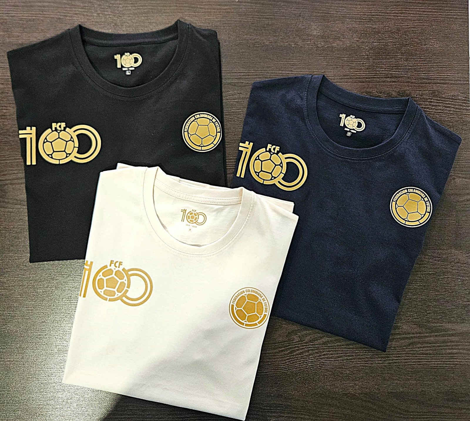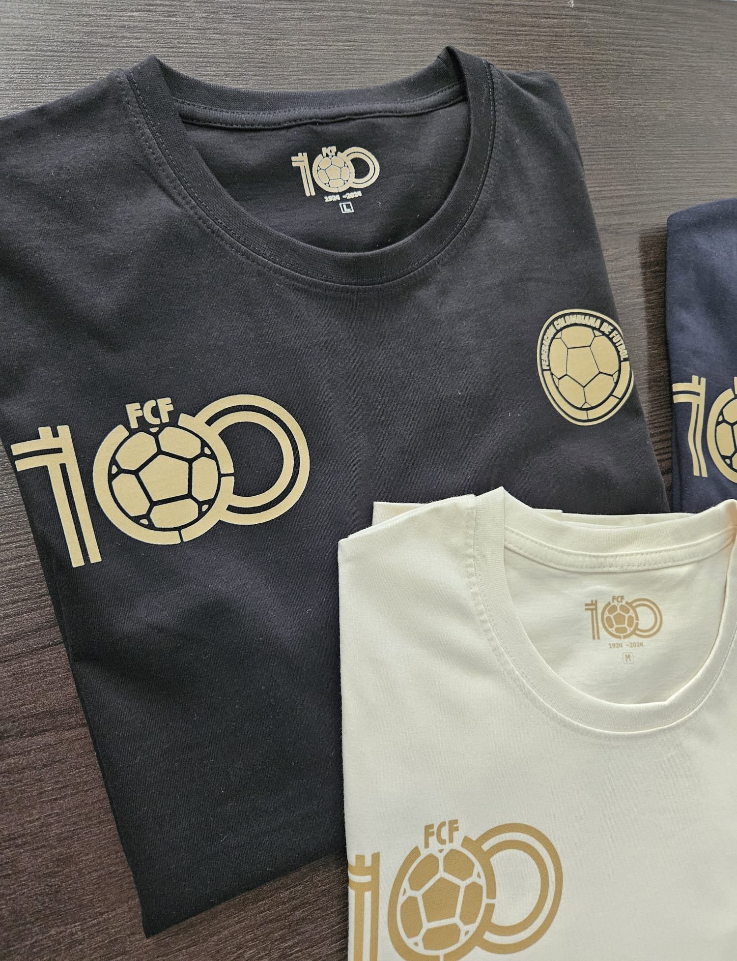 Esta camiseta conmemorativa ha sido fabricada con materiales de alta calidad para ofrecer comodidad, durabilidad y estilo en cada detalle. Disponible en versiones para adulto, mujer y niño y en color blanco vintage, azul oscuro y negro, es perfecta para que toda la familia celebre los 100 años de historia de la Selección Colombia.