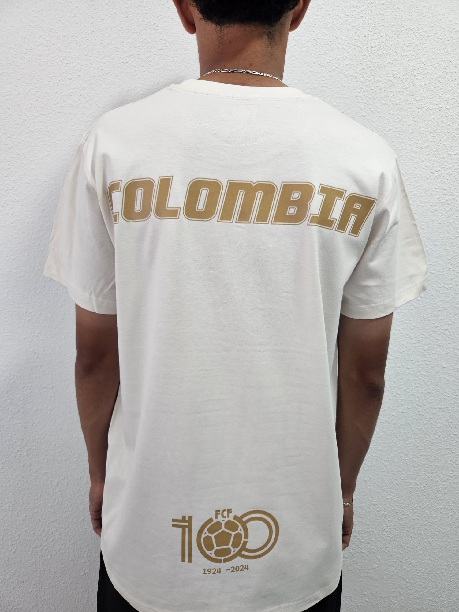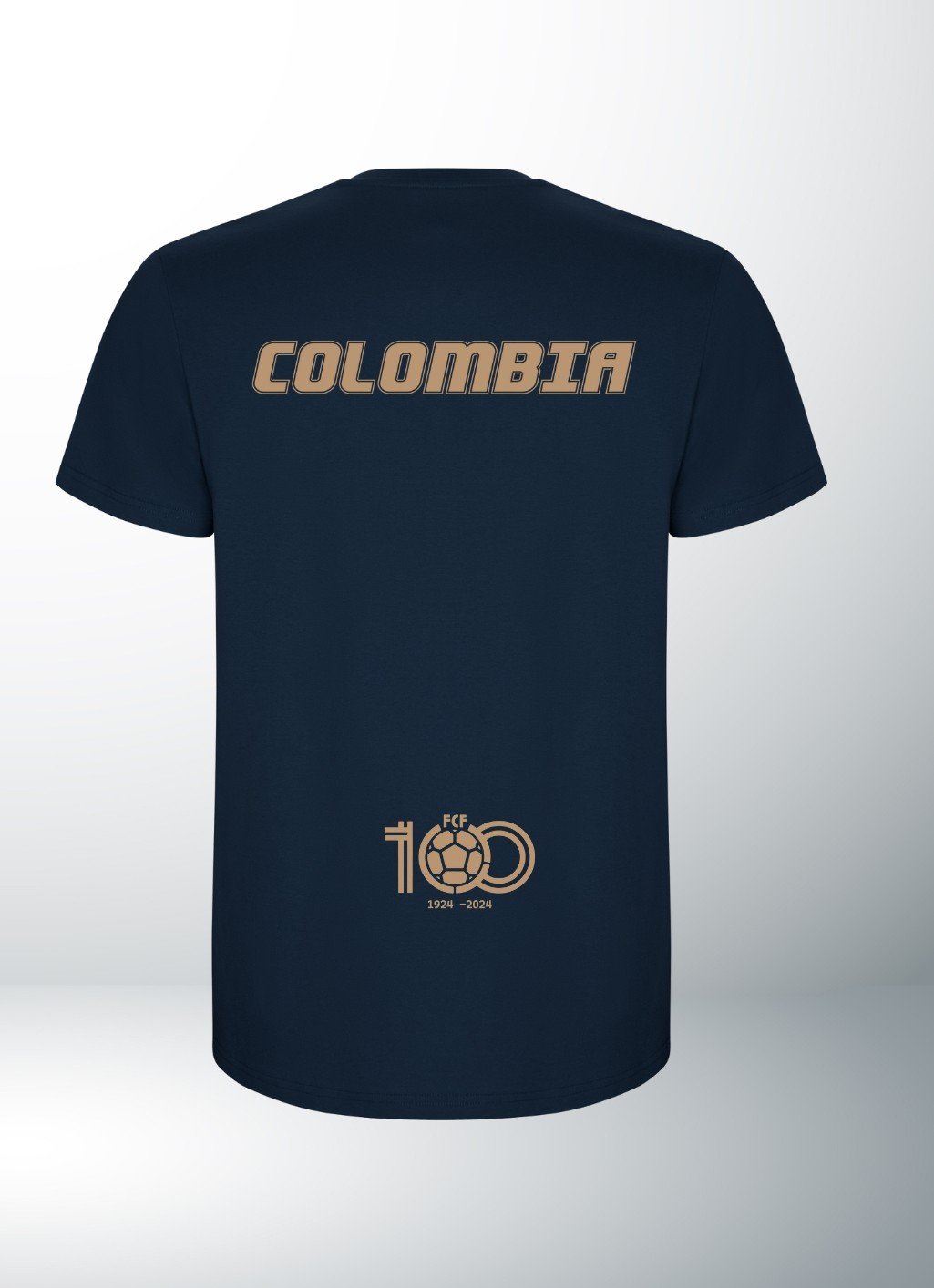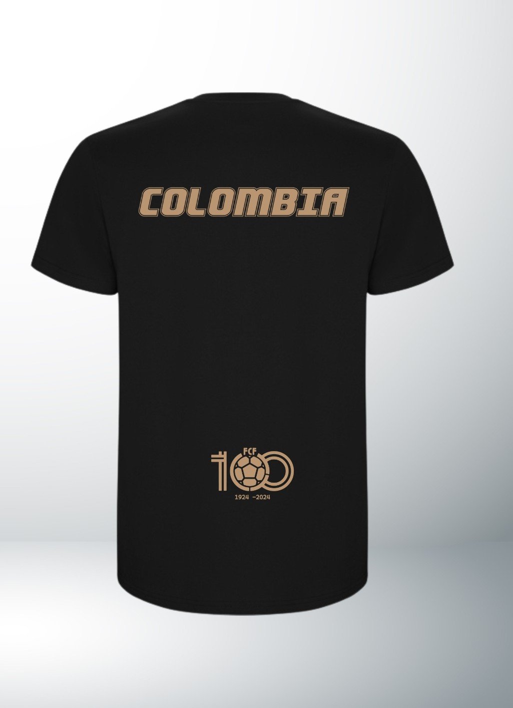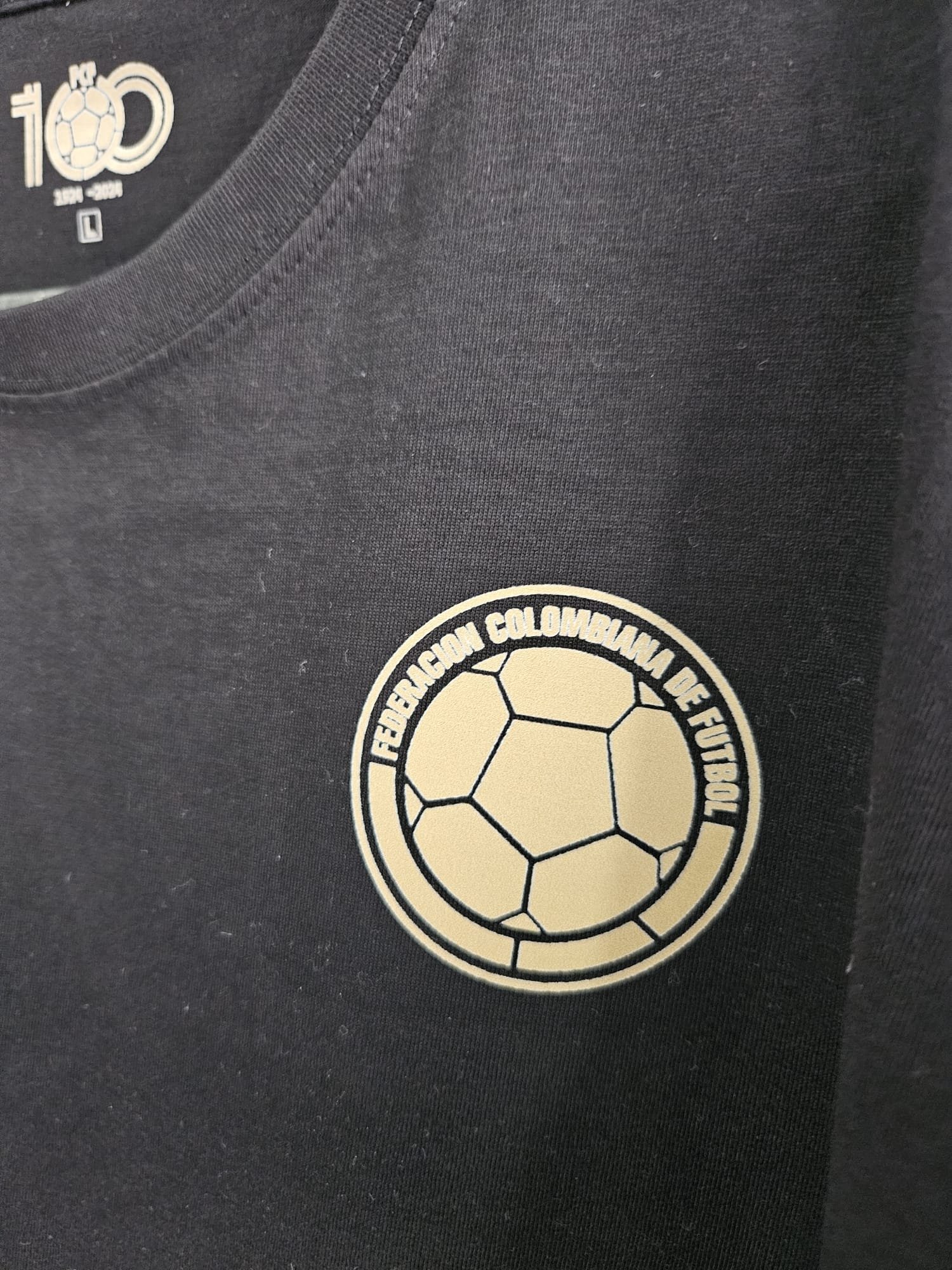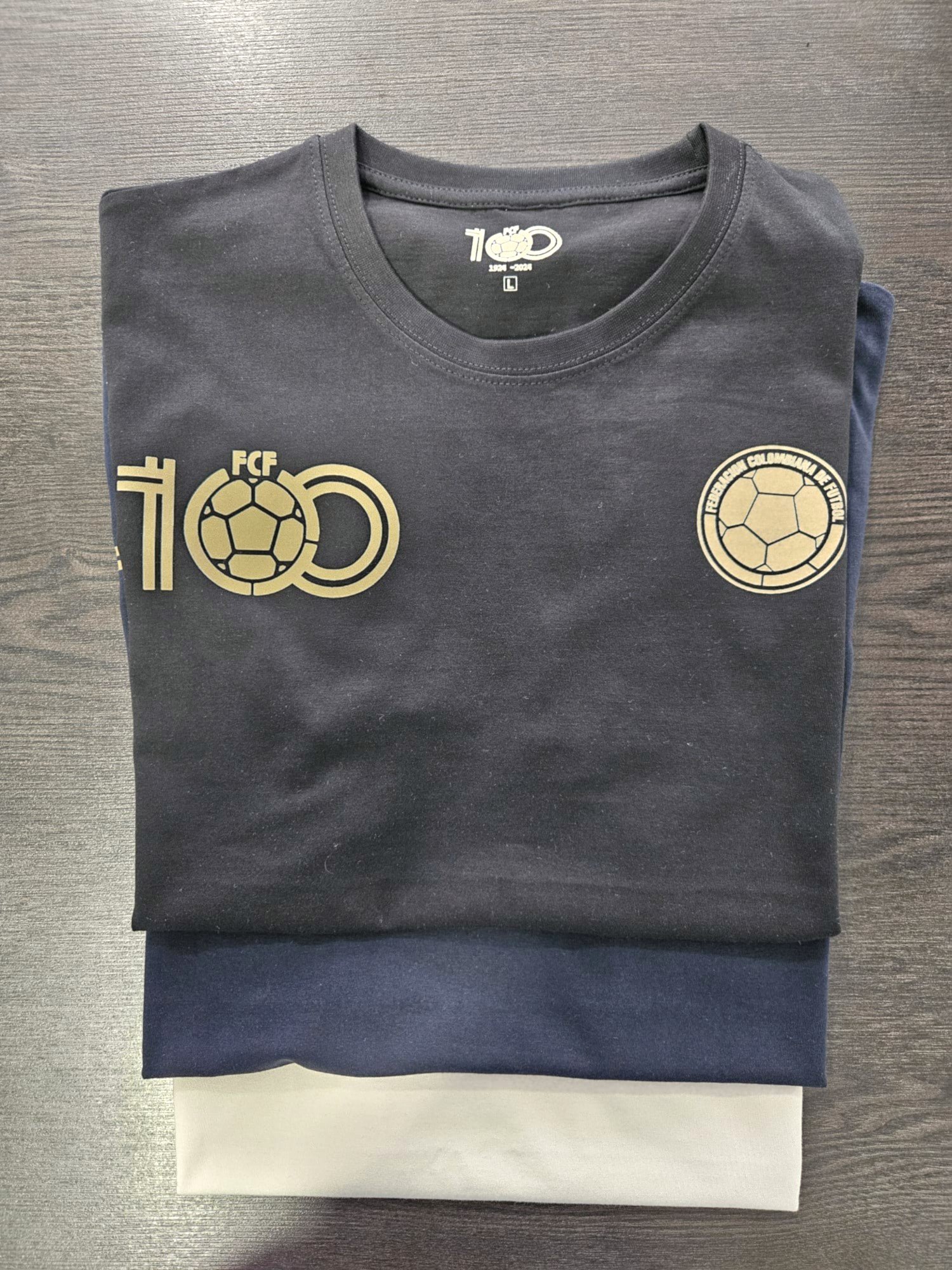Esta camiseta conmemorativa ha sido fabricada con materiales de alta calidad para ofrecer comodidad, durabilidad y estilo en cada detalle. Disponible en versiones para adulto, mujer y niño y en color blanco vintage, azul oscuro y negro, es perfecta para que toda la familia celebre los 100 años de historia de la Selección Colombia.