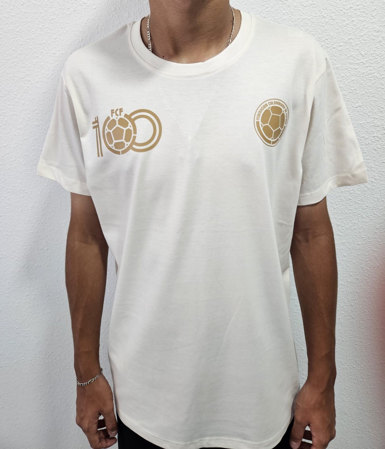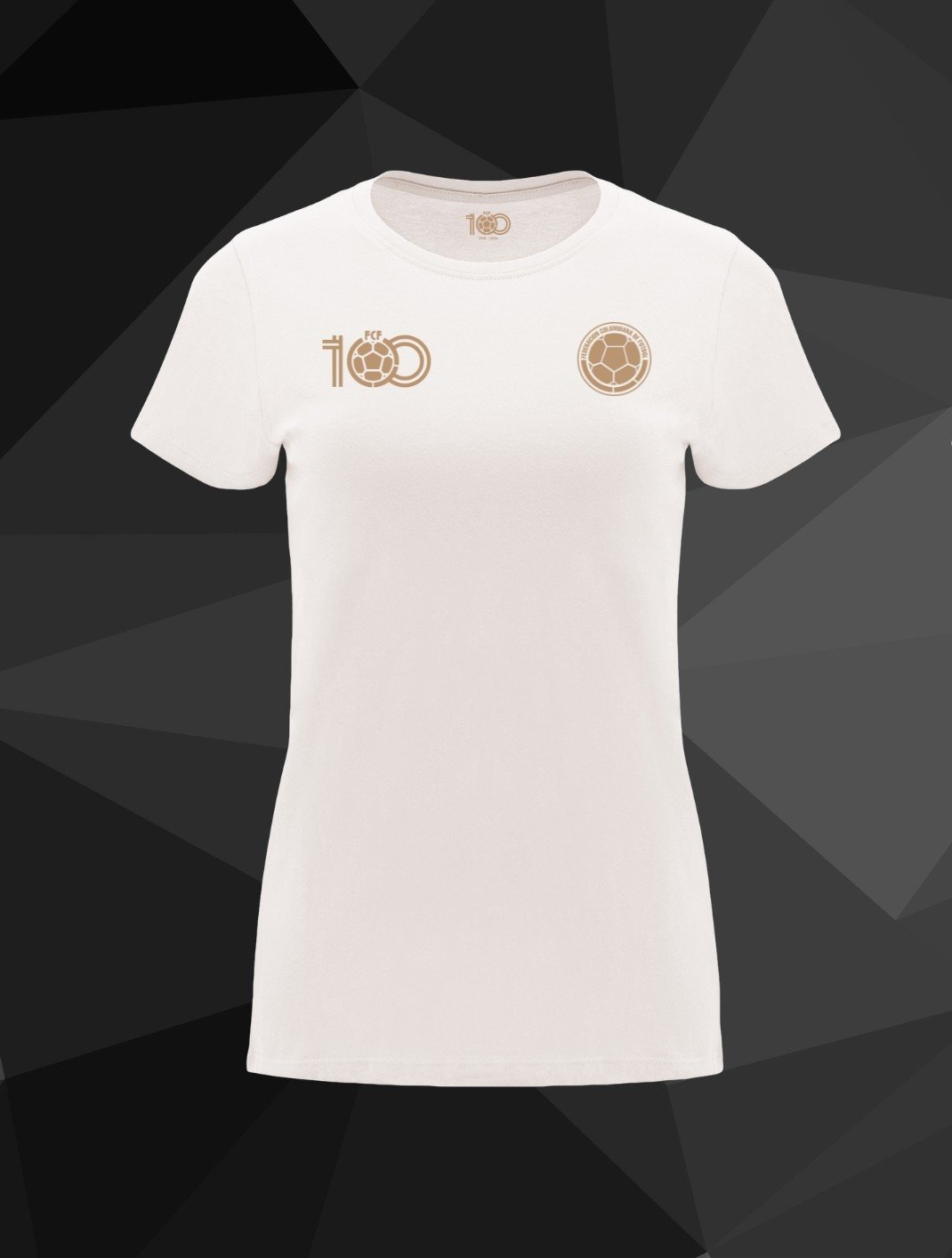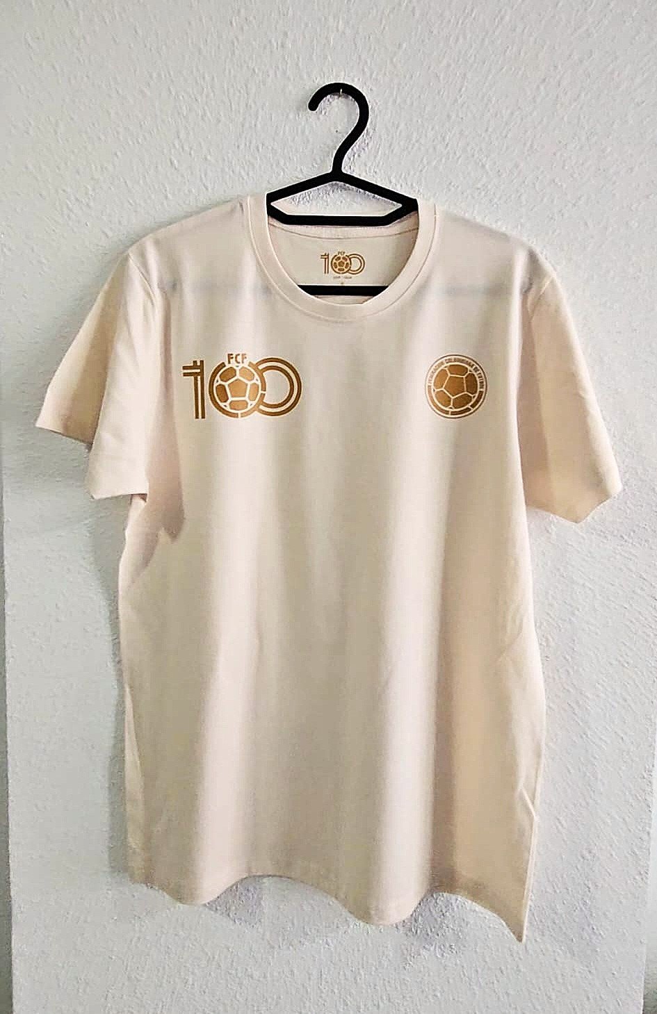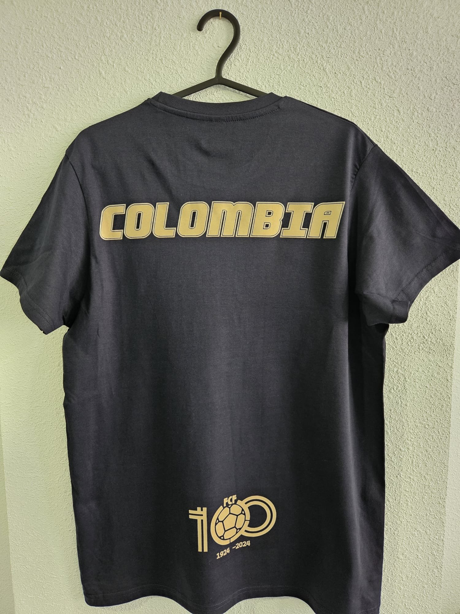Esta camiseta conmemorativa ha sido fabricada con materiales de alta calidad para ofrecer comodidad, durabilidad y estilo en cada detalle. Disponible en versiones para adulto, mujer y niño y en color blanco vintage, azul oscuro y negro, es perfecta para que toda la familia celebre los 100 años de historia de la Selección Colombia.