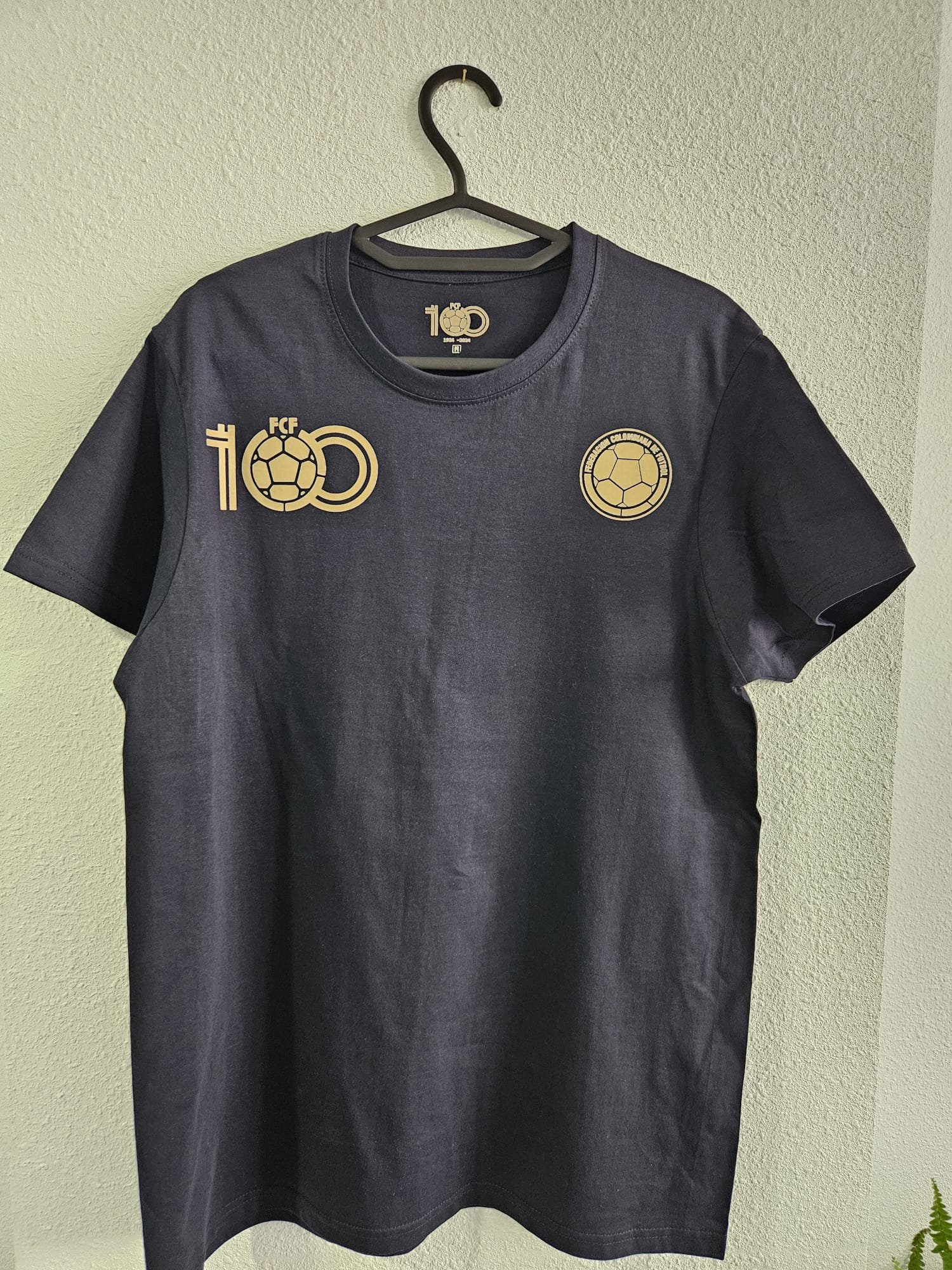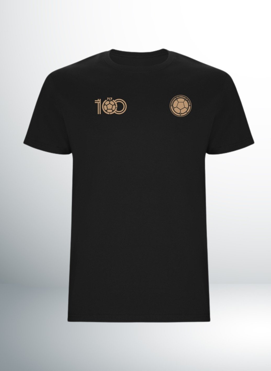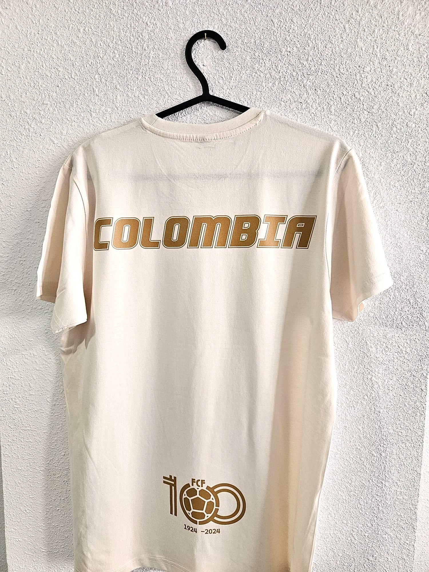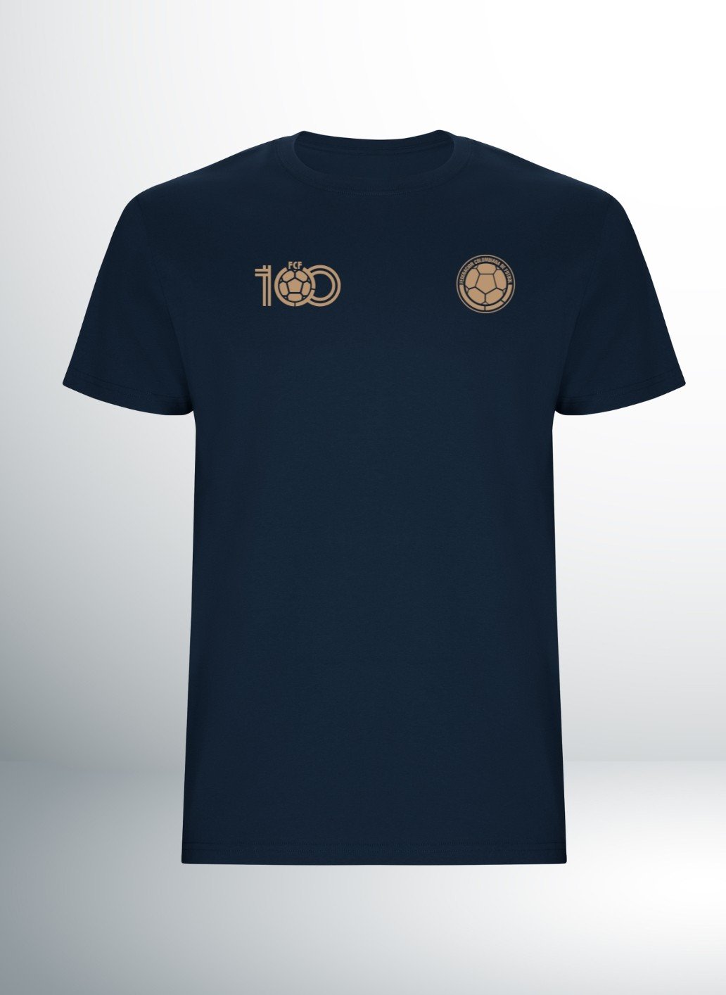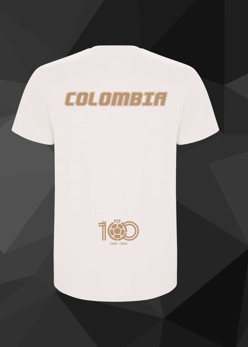 Esta camiseta conmemorativa ha sido fabricada con materiales de alta calidad para ofrecer comodidad, durabilidad y estilo en cada detalle. Disponible en versiones para adulto, mujer y niño y en color blanco vintage, azul oscuro y negro, es perfecta para que toda la familia celebre los 100 años de historia de la Selección Colombia.