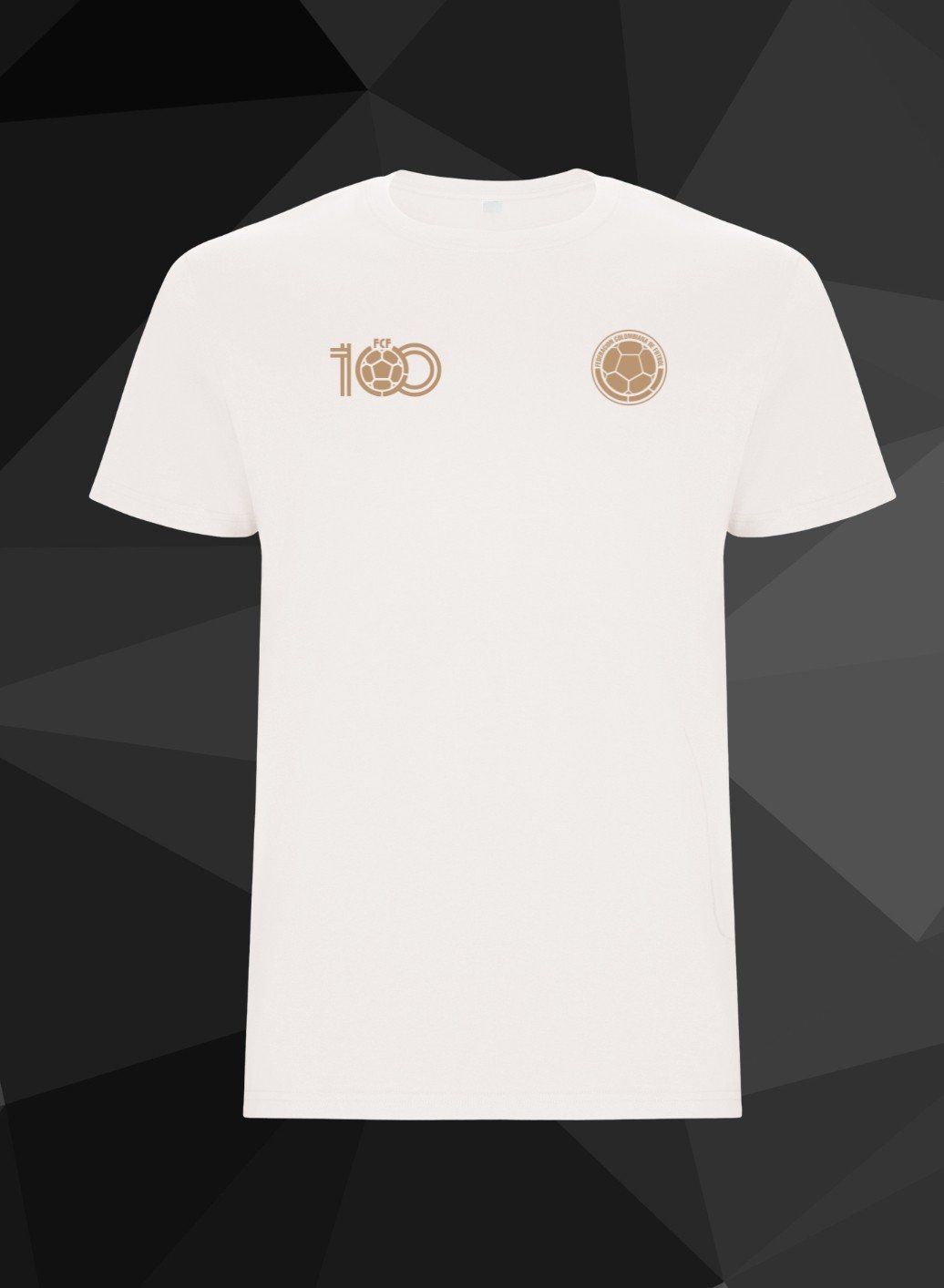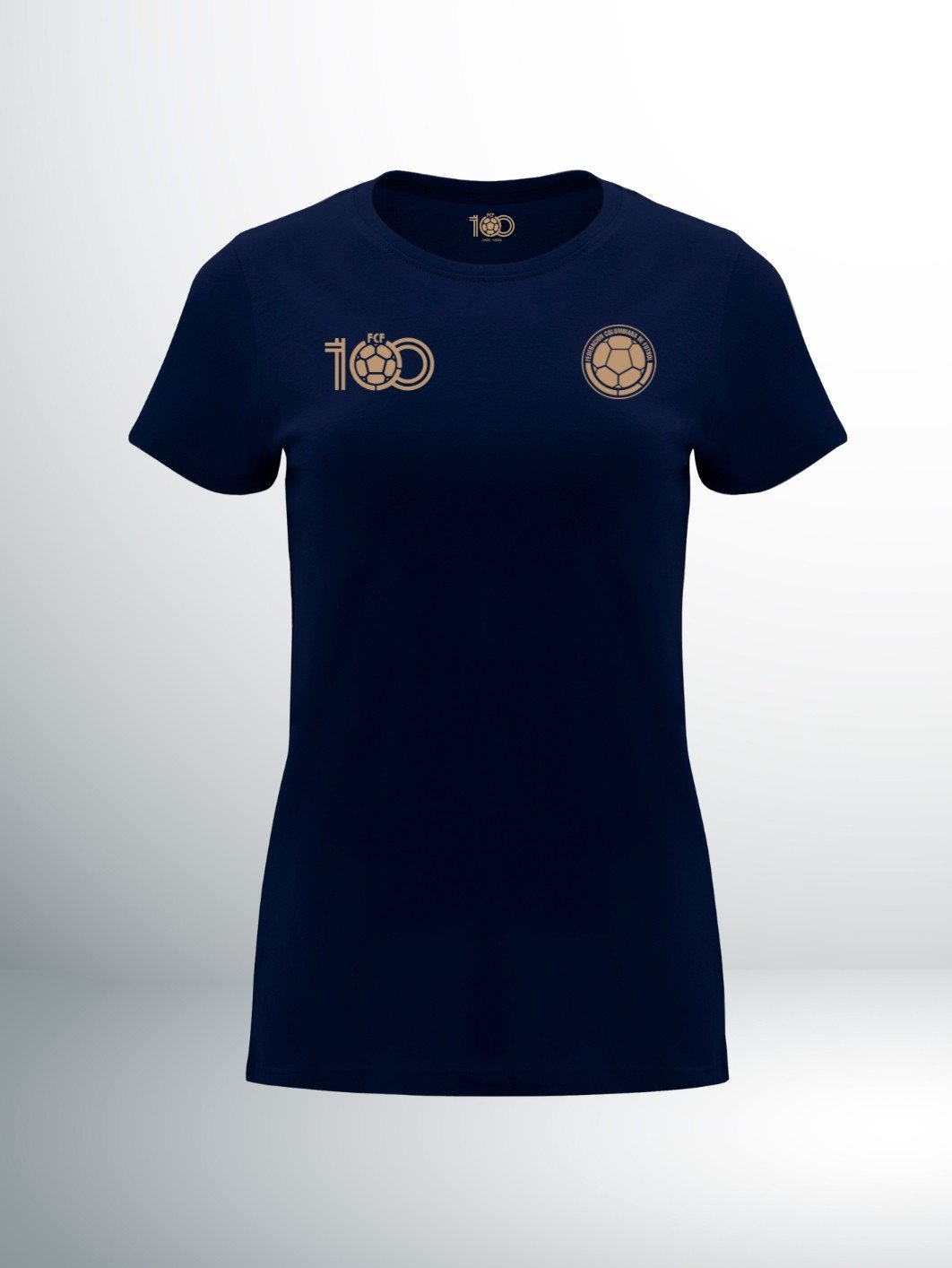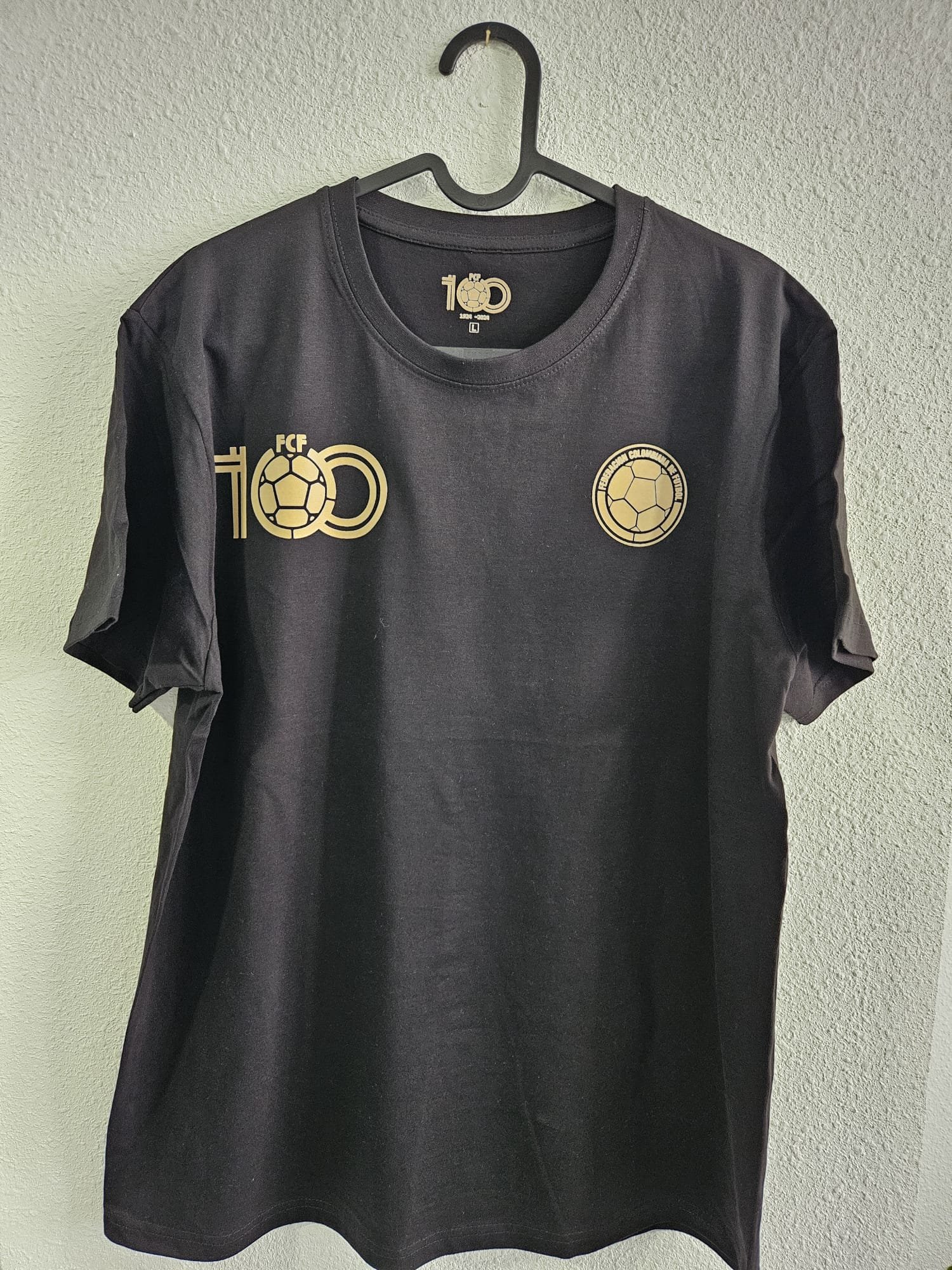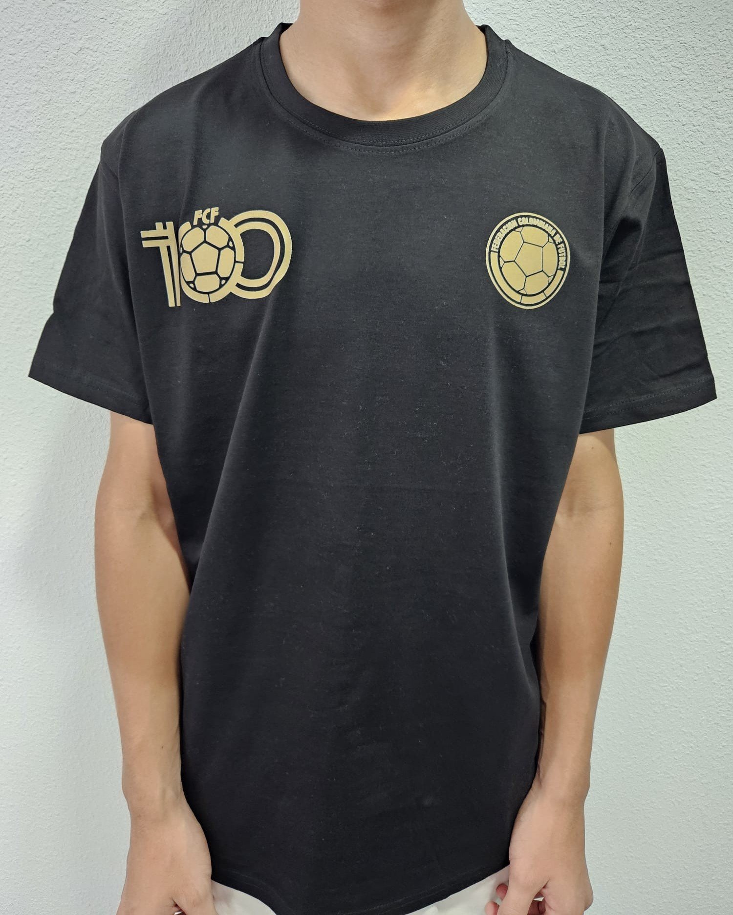 Esta camiseta conmemorativa ha sido fabricada con materiales de alta calidad para ofrecer comodidad, durabilidad y estilo en cada detalle. Disponible en versiones para adulto, mujer y niño y en color blanco vintage, azul oscuro y negro, es perfecta para que toda la familia celebre los 100 años de historia de la Selección Colombia.