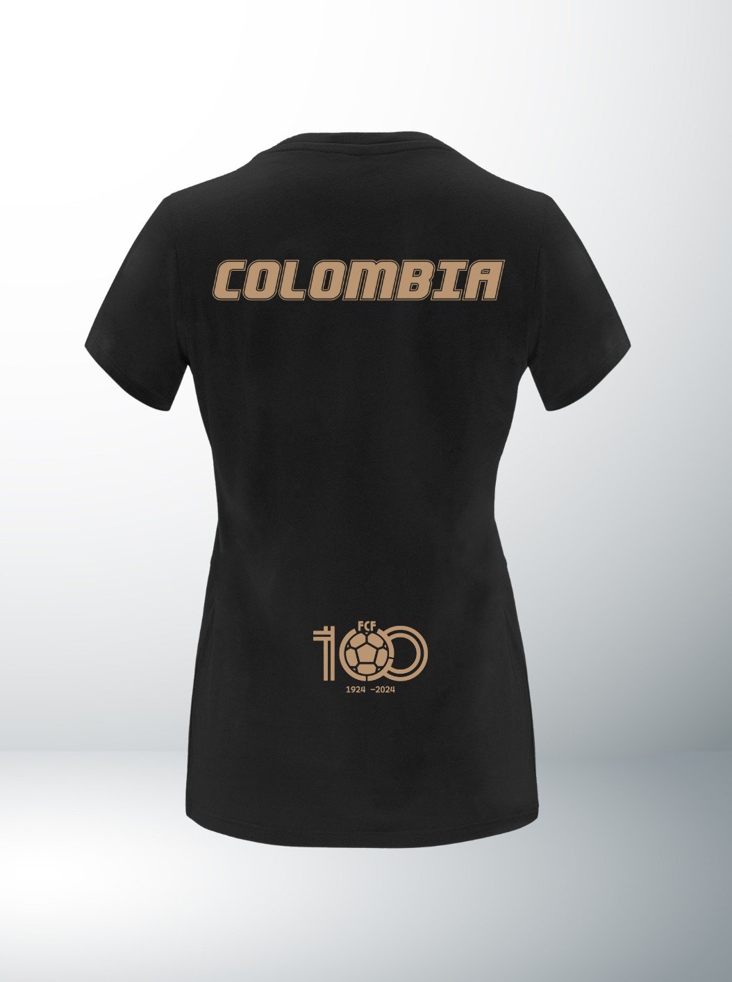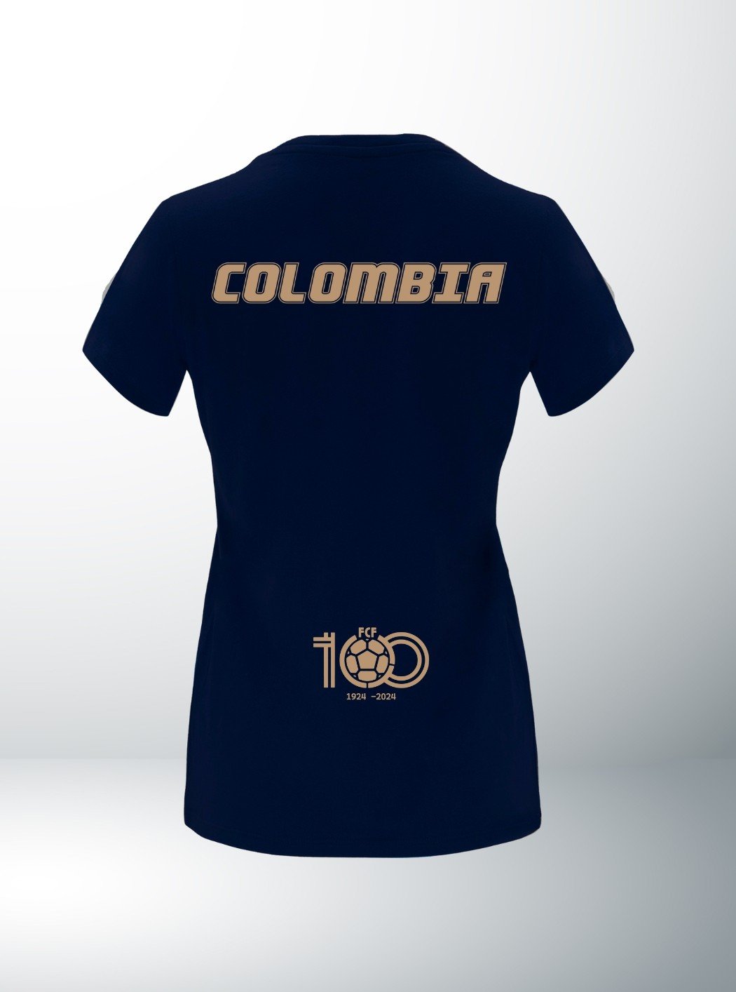 Con un diseño entallado que resalta la silueta femenina y un estampado conmemorativo único, esta camiseta ha sido creada para mujeres hinchas que viven la pasión por la Selección Colombia con elegancia, orgullo y estilo.