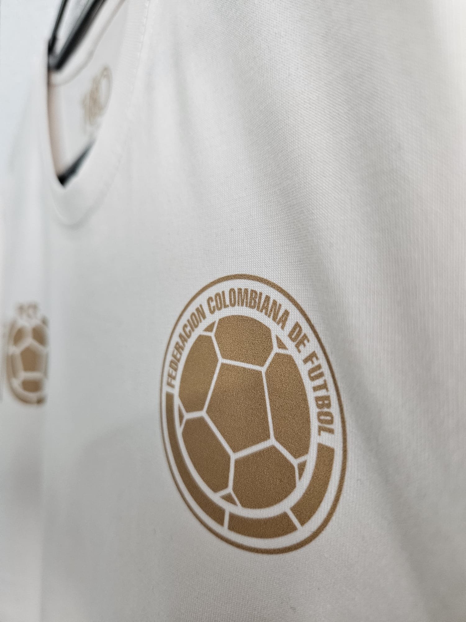 Cada detalle, desde el escudo conmemorativo hasta la elección del tejido, ha sido pensado para reflejar la identidad colombiana con elegancia, fuerza y autenticidad.